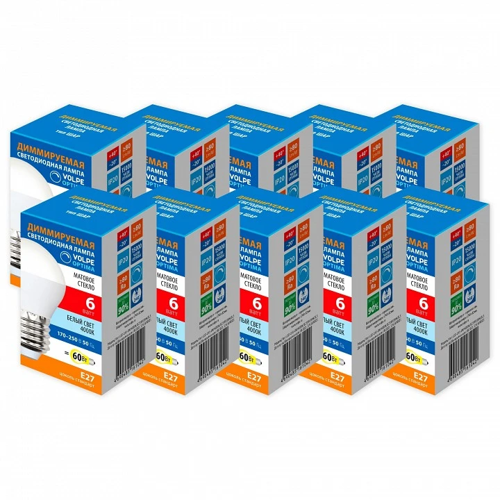 Набор из 10 ламп светодиодных Volpe OPTIMA DIM E27 6Вт 4000K UL-00013905