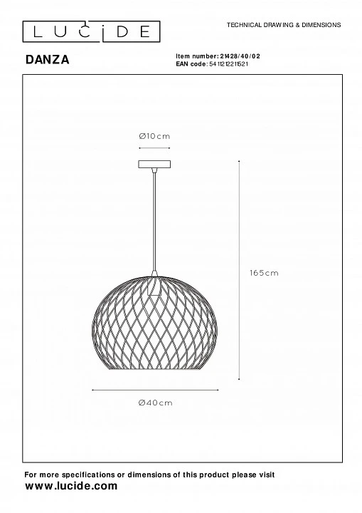 Подвесной светильник Lucide Danza 21428/40/02